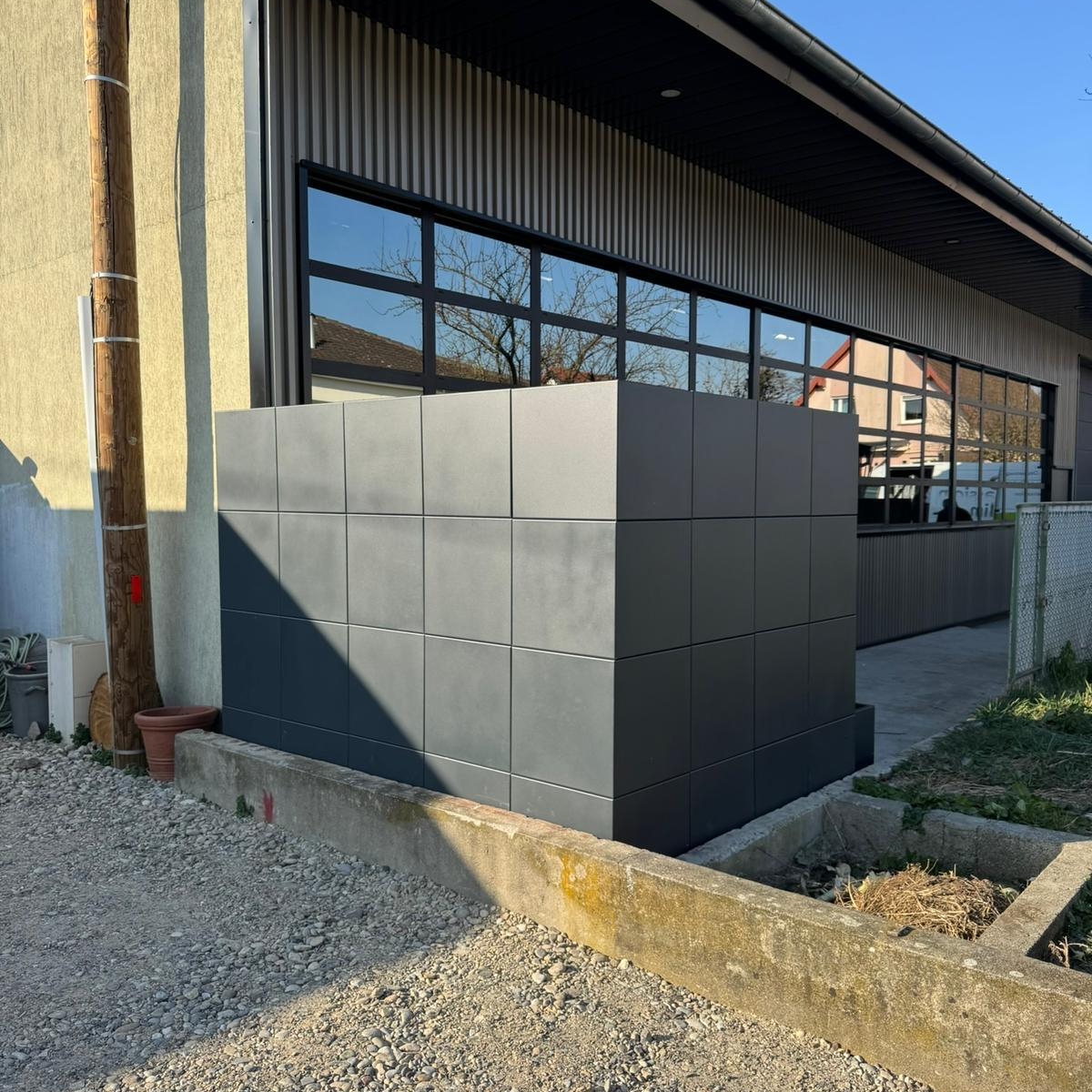 Dieses Projekt zeigt die Installation einer modularen Devaux Lärmschutzwand, die Außengeräte einer Klimaanlage an einem Geschäftsgebäude zuverlässig abschirmt und gleichzeitig optisch integriert.